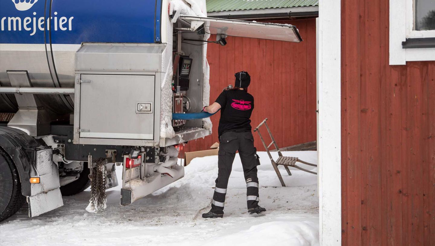 Hon åker från gård till gård och pumpar komjölk hos lokala bönder i Västerbottens inland och en vanlig arbetsdag levereras ungefär 18 kubikliter åt Sveriges nordligaste merjeri – Norrmejerier. Varannan dag töms mjölken i Umeå och varannan dag i Burträsk, där mjölken förädlas till den välkända och unika Västerbottensosten som producerats sedan 1872.