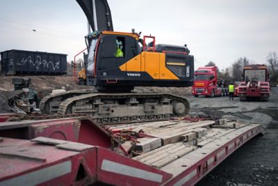Noggrann planering av alla moment och riskanalys låg bakom för att göra processen så säker som möjligt. På fredagen körde fyra av företagets Volvo FH16-lastbilar specialtransporter med olika anläggningsmaskiner på maskintrailers till Göteborg, bland annat bandgrävaren Volvo EC380E. Nu kunde nästa steg dra i gång. Trafikleden var delvis avstängd och skulle stängas ner helt senare på kvällen.