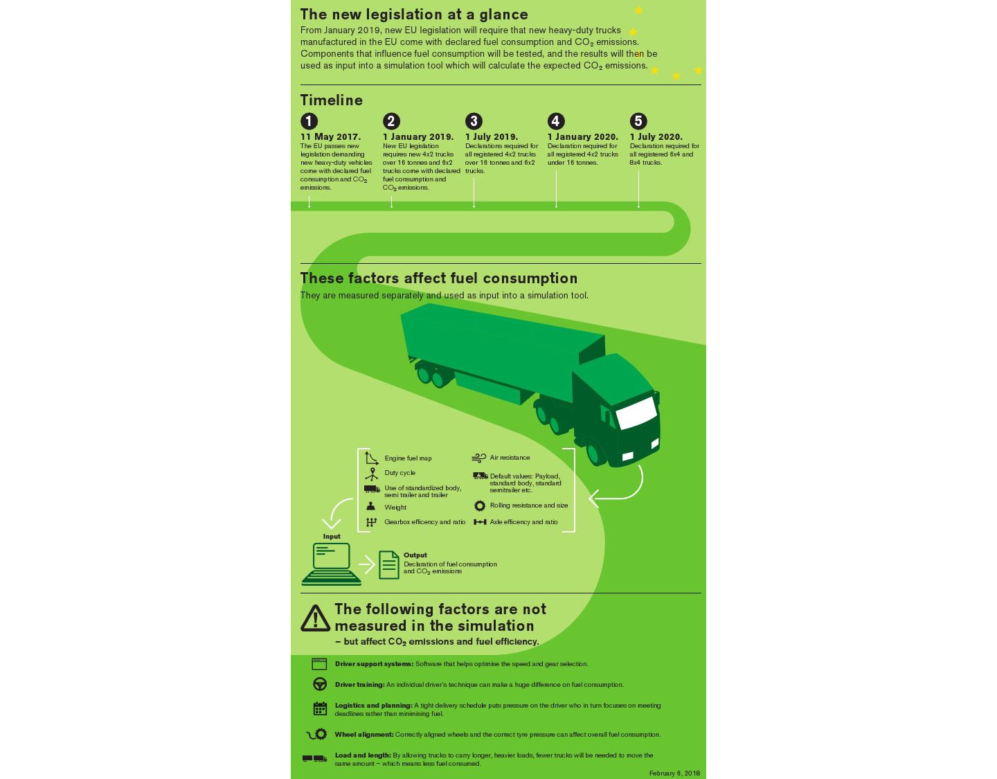 Från och med 1 januari 2019 blir det lag inom EU att tillhandahålla en deklaration till nya lastbilar som anger bränsleförbrukning och koldioxidutsläpp. Lagen införs steg för steg för olika typer av tunga fordon.