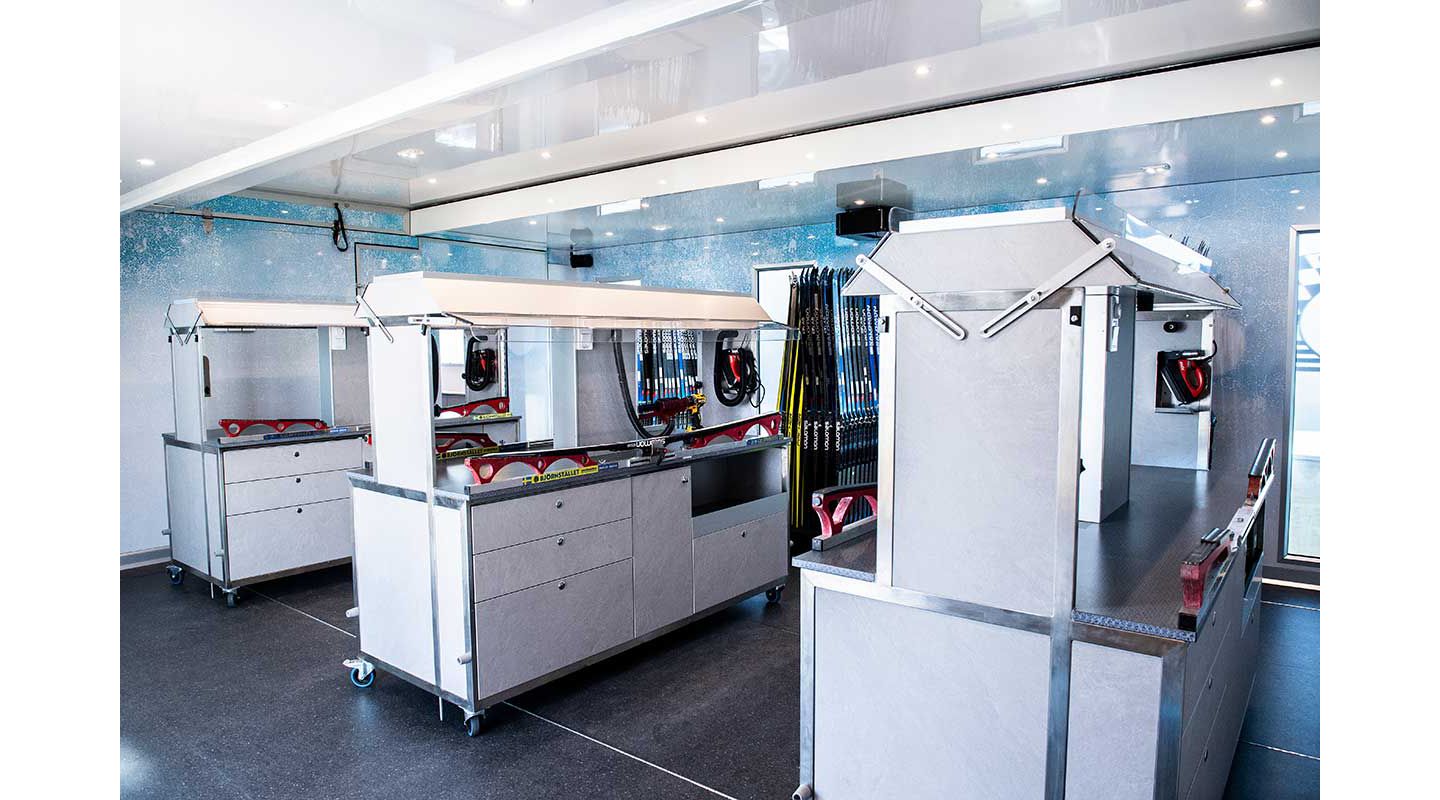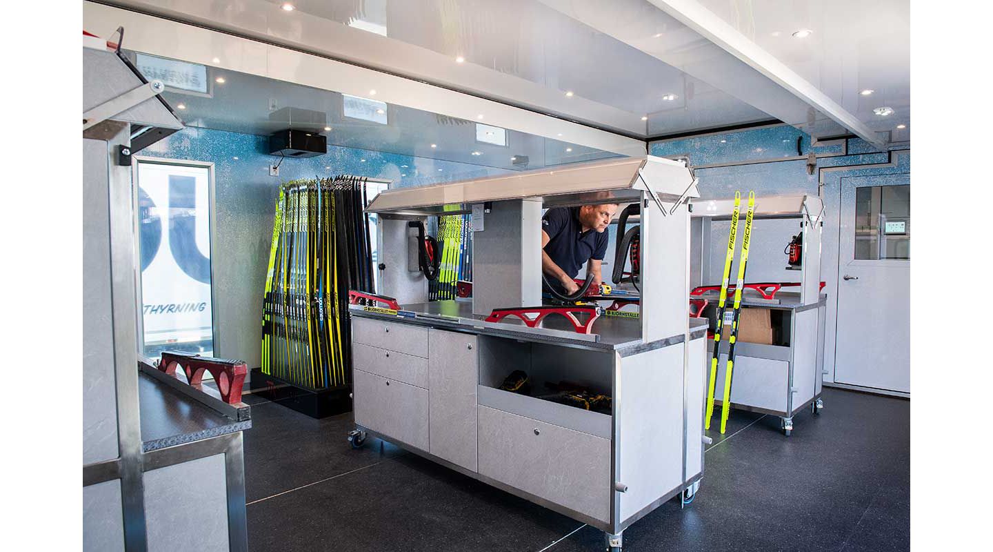 – Vi är väldigt nöjda med vår nya vallatrailer som blir en helt fantastisk arbetsplats för vallateamet. Den är miljömässigt toppmodern och erbjuder personalen bästa möjliga arbetsklimat. För oss är det viktigt att kunna ge vallateamet en attraktiv arbetsmiljö och nu får vi den mest effektiva arbetsplatsen bland vallateamen inom skidskyttevärlden. Uppvärmning och ventilation använder den senaste teknologin för att vallateamet ska kunna utföra sitt krävande och viktiga arbete under väldigt långa arbetsdagar i vallatrailern.