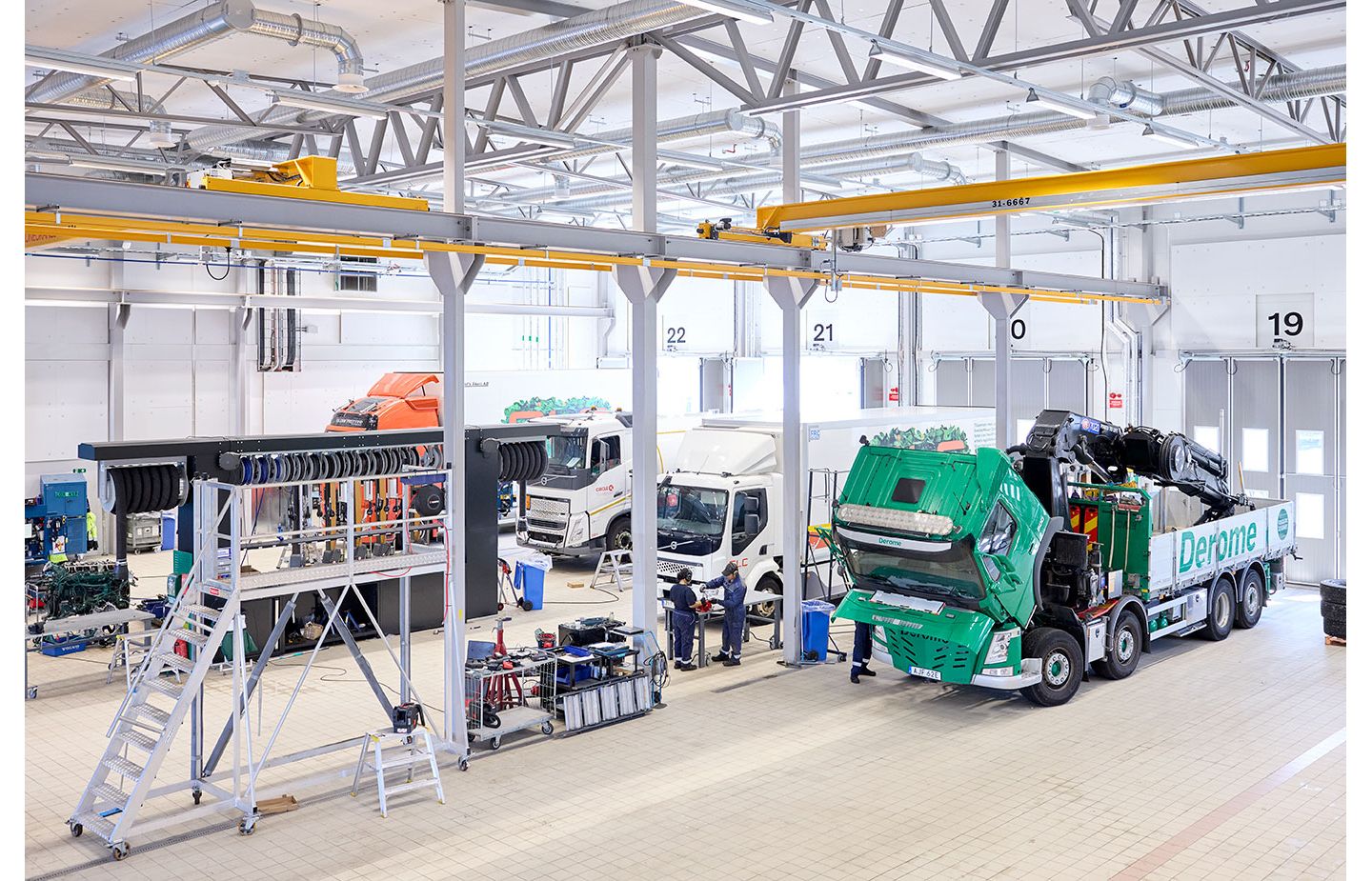 På anläggningen finns en fullskalig däckverkstad och en skadeverkstad. I kombination med välutbildad personal är anläggningen framtidssäkrad för att ta hand om tunga fordon med olika drivlinor, enligt Volvos trevägsstrategi mot nollutsläpp. Det innebär att minska koldioxidutsläppen inom transportsektorn för att nå sitt mål om nettonollutsläpp till 2040 med hjälp av en teknikstrategi i tre parallella spår. Denna väg framåt bygger på batterielektriskt, bränslecellselektriskt och förbränningsmotorer som körs på förnybara bränslen som grön vätgas, biogas (LBG) eller biodiesel och HVO (hydrerade vegetabiliska oljor).